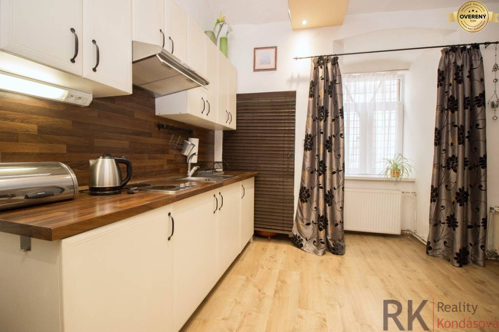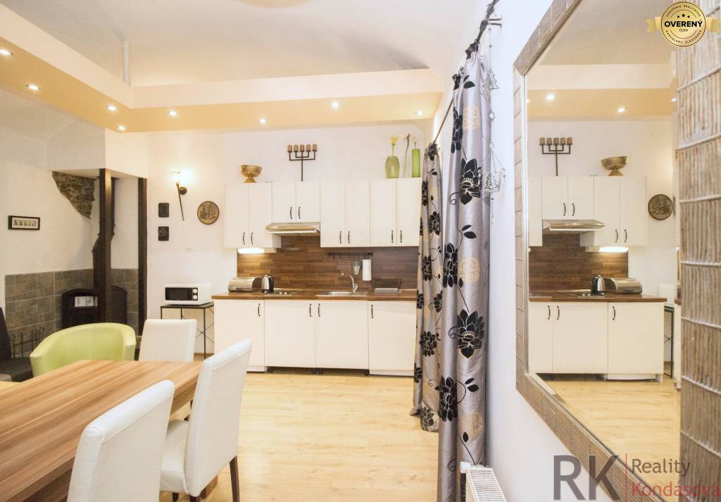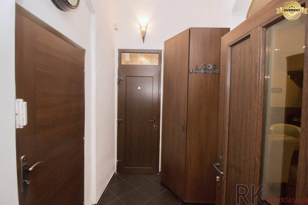 Exkluzívne Vám ponúkame na prenájom 2-izbový byt v meštiackom tehlovom dome v historickom centre Košíc, na prízemí, s parkovaním vo dvore. Vstup do dvora, ktorý sa večer uzamyká, je z dvoch strán- z Kováčskej ulice (prístup s autom) a z Hlavnej ulice. Tvorí ho: obývačka s kuchyňou, spálňa, chodba a kúpeľňa so sprchovacím kútom, umývadlom a WC. Vykurovanie zabezpečuje vlastný, diaľkovo ovládaný elektrický kotol, príjemnú atmosféru dotvára aj kúrenie v kachľovej peci. Vodu ohrieva elektrický bojler. Byt sa prenajíma kompletne zariadený, vrátane elektrospotrebičov - chladnička s mrazničkou, elektrická varná doska, elektrická rúra, mikrovlná rúra, práčka, televízor. Cena za prenájom bytu je 850 EUR/mesiac, vrátane energií, internetu a parkovacieho miesta vo dvore. Depozit je vo výške dvojmesačného nájmu. Bývanie na tomto mieste Vám poskytne maximálne súkromie a komfort.