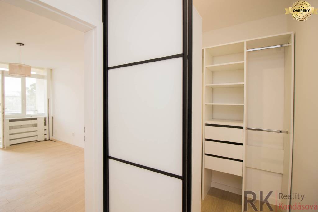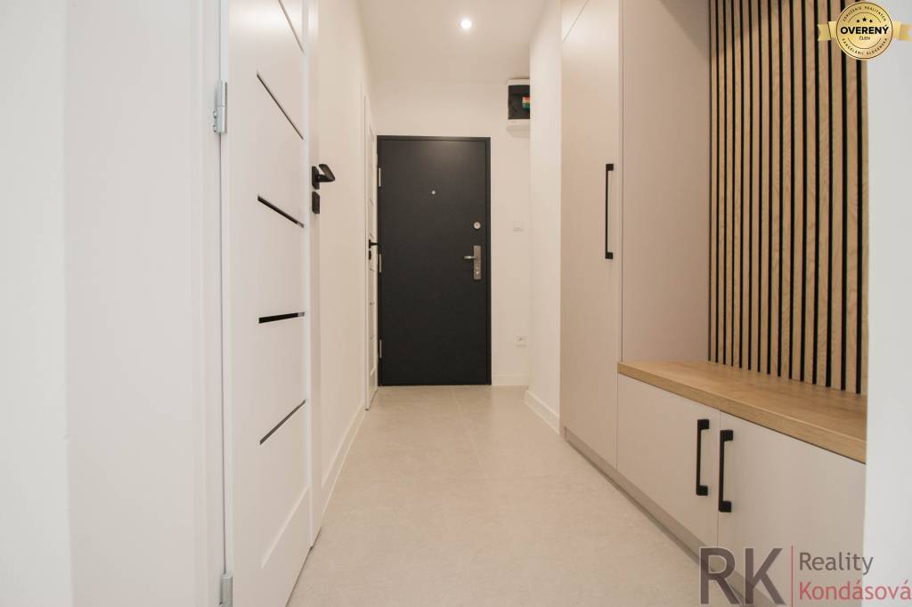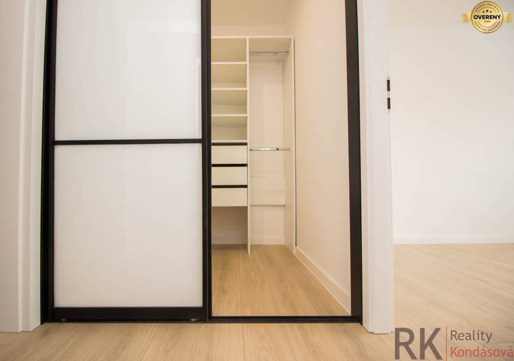 Bonusom je na mieru zrealizovaný predsieňový nábytok a elegantný šatník s posuvnými dverami.