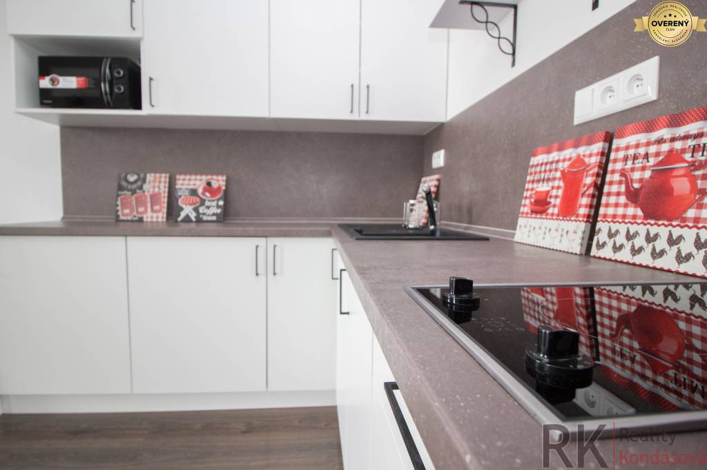 V kuchyni je vstavaná chladnička, vstavaná automatická práčka, mikrovlná rúra s grilom,