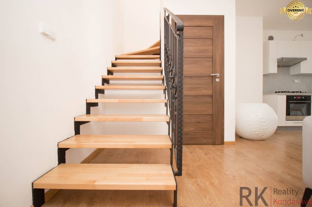 Exkluzívne Vám ponúkame na prenájom atraktívny tehlový mezonetový byt s balkónom a výťahom v historickom centre Košíc, s úžitkovou plochou 87 m2, na 2.poschodí, vo Valentina pasáži, spájajúcej ulice Hlavná a Mäsiarska. Na 1. podlaží je otvorená dispozícia, ktorú tvorí chodba s francúzskym balkónom, obývacia hala so štýlovým dreveným schodiskom, kuchyňa, spálňová časť s balkónom a kúpeľňa s WC a umývadlom. Na 2. podlaží je spálňa s praktickým šatníkom, kúpeľňa s vaňou, umývadlom a WC. Byt sa prenajíma zariadený, vrátane elektrospotrebičov : teplovzdušná elektrická rúra, plynová varná doska, digestor, chladnička s mrazničkou, mikrovlná rúra, automatická práčka. Pasáž poskytuje rôzne služby s tichými prevádzkami, napr. kaderníctvo, barbershop, manikúra, pedikúra, masáže, účtovnícke služby. V blízkosti je OD Urban a pešia zóna Košíc s kaviarňami, reštauráciami, obchodmi a s možnosťami kultúrno-spoločenského vyžitia. Cena za prenájom je vo výške 1 200 EUR/mesiac, vrátane energií a internetu.