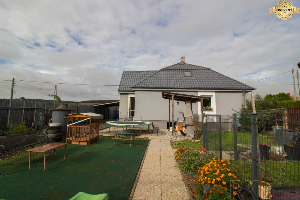 Exkluzívne Vám ponúkame na predaj útulný 6- izbový rodinný dom v obci Košické Oľšany, iba 10 km z centra Košíc, na rovinatom pozemku o rozlohe 941 m2. Dom bol pred desiatimi rokmi kompletne rekonštruovaný, zateplený, bola potiahnutá nová elektrika, nové rozvody vody a odpadu. Strecha prešla rekonštrukciou, má novú strešnú plechovú krytinu. Na prízemnom podlaží sa nachádza chodba, obývacia hala s jedálenskou časťou a kuchynskou linkou so spotrebičmi (kombinovaný sporák, umývačka riadu), dve izby, kúpeľňa so sprchovacím kútom a samostatné WC. Dreveným schodiskom sa dostaneme na podkrovné podlažie. Sú tu 3 izby, chodba a WC s umývadlom. Kúrenie je teplovodné zabezpečené plynovým kotlom. Odpad je riešený žumpou. Voda je obecná, na polievanie záhrady slúži studňa. Internet a príjem TV je riešený optickými káblami (Telecom). Dvor poskytuje priestor pre každého obyvateľa domu: je tu detské ihrisko, altánok na grilovanie, prístrešok pre domácich miláčikov, plechová garáž, ovocná záhrada ( jabloň, višňa, čerešňa, slivka, egreše, lieska) a zeleninová záhradka. Radi Vám pomôžeme s financovaním tejto nehnuteľnosti prostredníctvom hypotekárneho úveru.