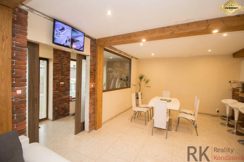 Máme tip pre Váš podnikateľský zámer 15 km od Košíc: tehlový rodinný dom v obci Ploské, časť Ortáše, s úžitkovou plochou 500 m2. Celkový pozemok na predaj je 1 133 m2 (z toho 700 m2 je pozemok prislúchajúci k domu a 433 m2 je pozemok oproti domu s jedinečným výhľadom a s variabilným využitím pri potoku). Dom je dvojpodlažný. Na 1. podlaží sa nachádza zádverie, spoločenská miestnosť s krbom, kompletne vybavenou kuchyňou a jedálenskou časťou, dve izby, kúpeľňa s WC a bidetom, fitness miestnosť a priestor s predprípravou pre welness. Pravý biely taliansky mramor použitý na podlahu a obklad vnáša do priestoru luxus a nadčasovosť. Na 2. podlaží, ktoré je dostupné aj samostatným schodiskom z dvora, je priestranná hala, kuchynská linka, chodba a 8 jednoizbových apartmánov so samostatnými kúpeľňami a toaletami ( štyri z nich sú nedokončené). Kúrenie je v celom dome teplovodné podlahové, zabezpečené plynovým kotlom. Odpad je riešený čističkou odpadových vôd. Na pozemku je samostatný sklad a na dokončenie čaká vonkajší bazén. Bezprostredná blízkosť prírody predurčuje nehnuteľnosť k atraktívnemu podnikateľskému zámeru, napr. Penzión, Rehabilitačno-terapeutické centrum alebo Súkromné zariadenie pre seniorov. Kúpu tejto nehnuteľnosti je možné financovať aj prostredníctvom hypotekárneho úveru alebo podnikateľského úveru, s ktorým Vám vieme pomôcť.